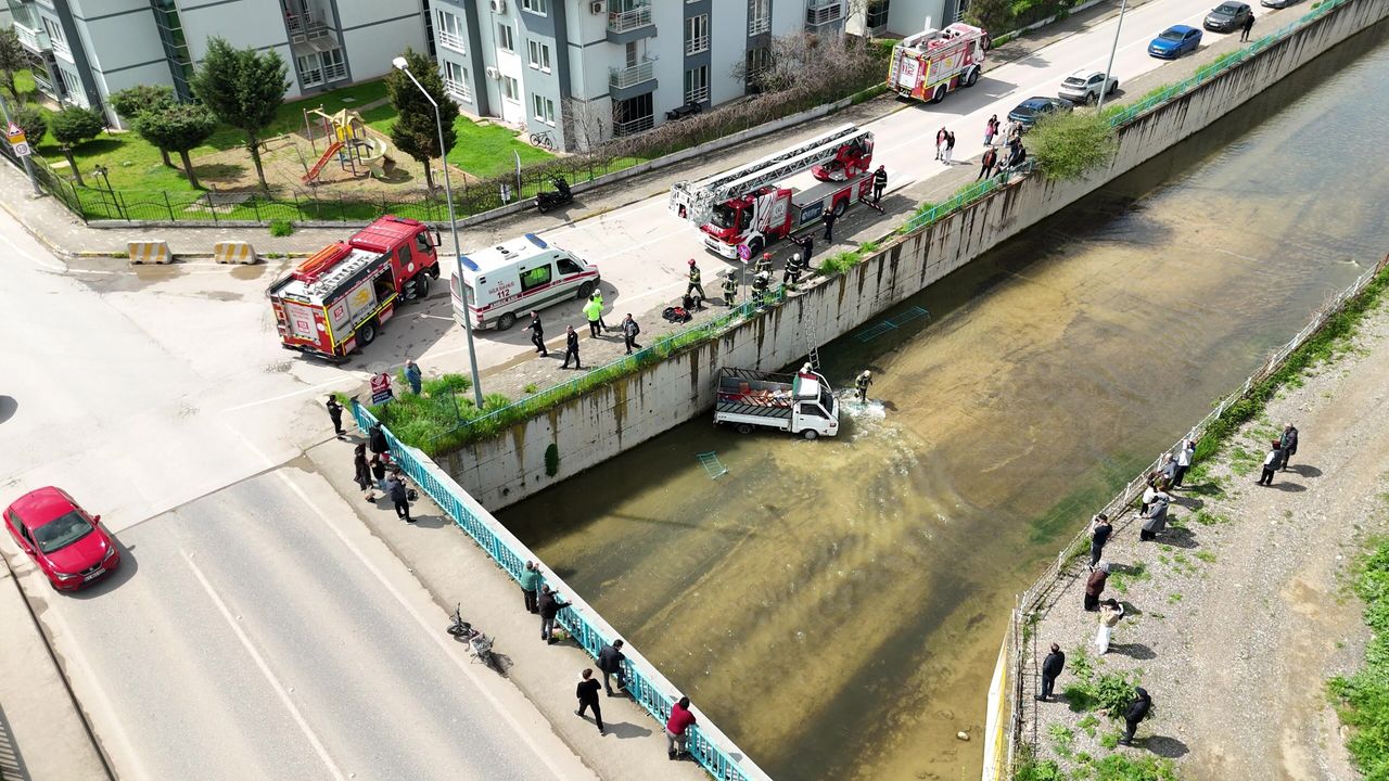 İzmit’te kamyonet dereye düştü, sürücüsüne kalp masajı yapıldı