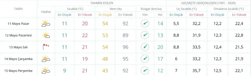 Özellikle 11 Mayıs Cumartesi günü, 22 dereceyle haftanın en ılık günü yaşanacak. Takip eden günlerde ise sıcaklıklar 18 ila 21 derece arasında dalgalanacak. Hafta boyunca rüzgâr zaman zaman etkisini artırabilir. Özellikle sabah ve akşam saatlerinde hissedilen serinlik nedeniyle vatandaşların tedbirli olması öneriliyor.