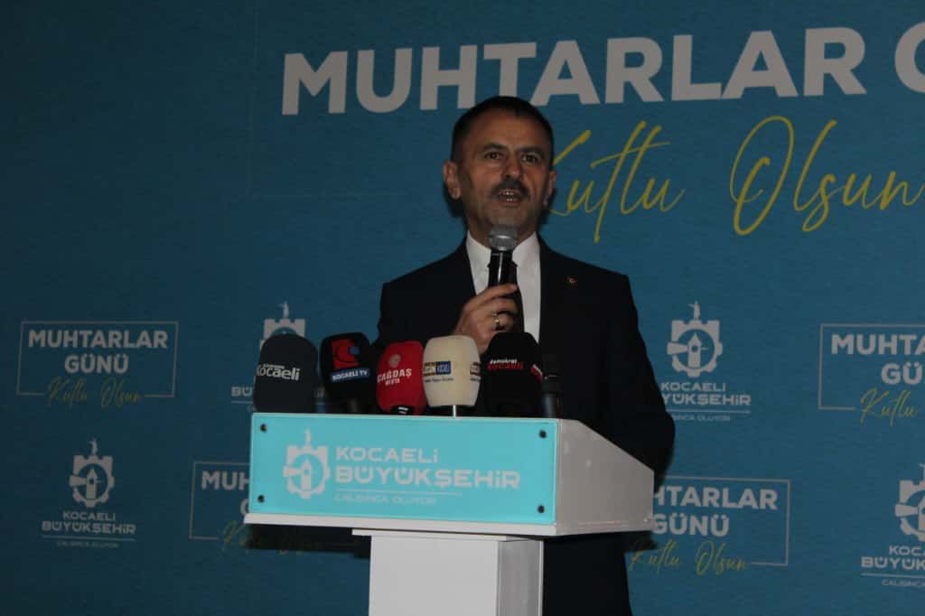 Türkiye şahıslarla değil kurumlarla iş yapmayı öğrenmeli. Diğer kurumların başında olan Sayın Valimize de özellikle teşekkür etmek istiyorum. Kentin neresinde sorun varsa orada kendisi. Vali itfaiyeci mi yangında ne işi var denirdi çok eskiden ama Sayın Valim her yerde yer alıyor. Kentimizin her sorunu için canla başla çalışıyor. Yeni araçlarımız geldi Göz Kulak ekibimiz kuruldu. Bizim sorumluluğumuzda olan bölgeleri gezecekler ve sorunu çözecekler” ifadelerini kullandı. AK Parti Kocaeli Milletvekili Sadettin Hülagü de programda yaptığı konuşmasında muhtarlara her zaman değer verdiğini belirterek özel günlerini kutladı.