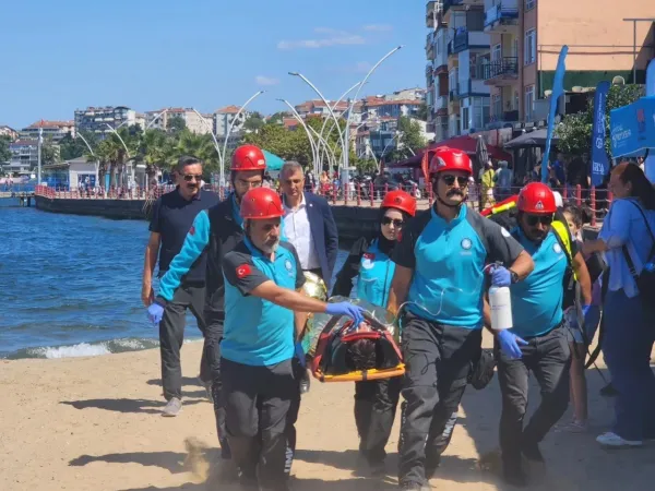 Dalgıçlar tarafından denizde boğulma tehlikesi geçiren ve su altında kalan binanın batığından çıkarılan yaralılar, ilk müdahalelerinin ardından hastaneye kaldırıldı. Vatandaşların yoğun ilgisi altında başarıyla tamamlanan tatbikat sonrasında Başkan Sezer, kurtarma ekiplerini tebrik etti.