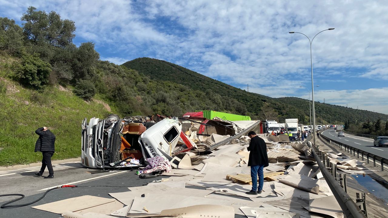 Kaza, TEM Otoyolu Kirazlıyalı mevkisinde meydana geldi. İddiaya göre seyir halindeki bir tırın sürücüsü direksiyon hâkimiyetini kaybetti. Kontrolden çıkan araç, aynı yönde ilerleyen başka bir tırla çarpıştı. Çarpışmanın şiddetiyle tırlardan biri devrildi, dorsesinde bulunan yükler yola savruldu.