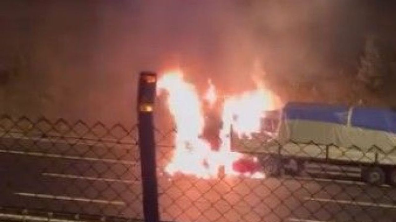 Yangın nedeniyle otoyolun İstanbul yönünde trafik bir süre kontrollü olarak sağlandı.