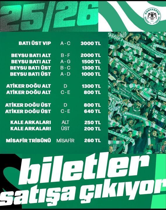 Konyaspor - Kocaelispor mücadelesinin bilet fiyatları belli oldu. Trendyol Süper Lig'in 9. haftasında oynanacak olan karşılaşma için taraftarların yoğun ilgi göstermesi bekleniyor. Biletler, yarın saat 11.00’den itibaren satışa sunulacak.