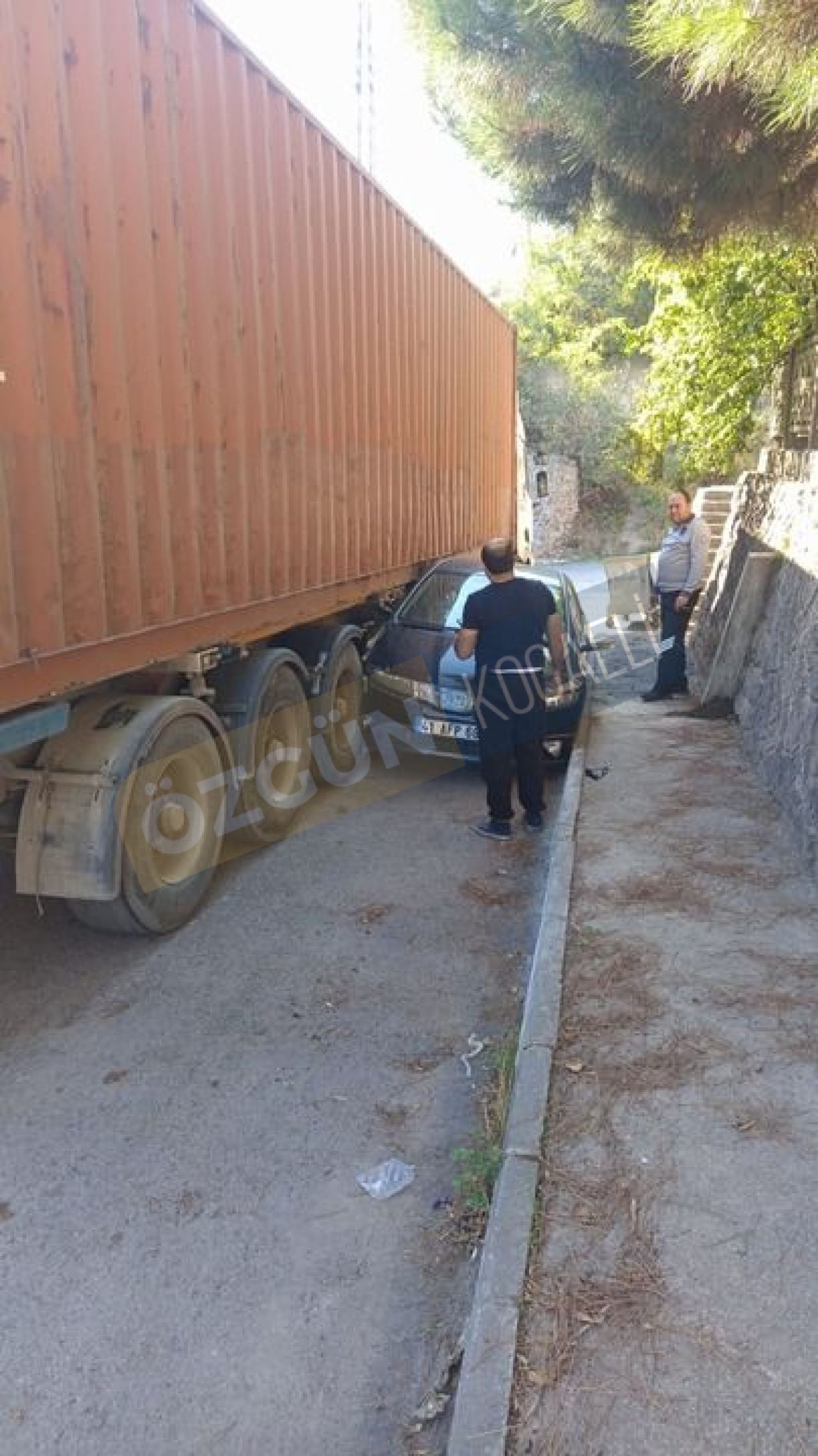Kaza, Derince Liman Yolu üzerinde meydana geldi. Edinilen bilgilere göre, seyir halindeki bir tır, yol kenarında park halinde bulunan otomobile henüz belirlenemeyen bir sebeple çarptı. Çarpmanın şiddetiyle otomobil büyük hasar aldı, araç adeta hurdaya döndü.