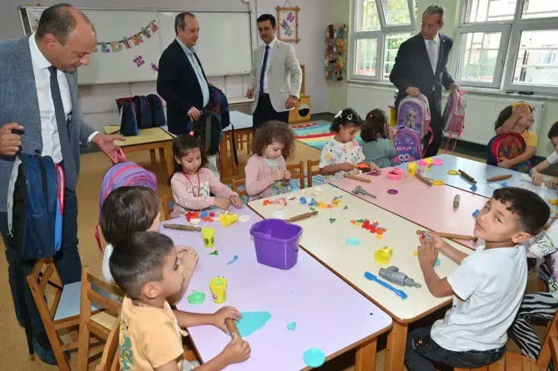 Kocaeli Sanayi Odası (KSO) Meclis Başkanı Hasan Tahsin Tuğrul, Kocaeli Sanayi Odası (KSO) Genel Sekreteri Memet Barış Turabi, Okul Müdürü Hamit Şişman ve müdür yardımcıları ile öğretmenler sınıfları gezerek öğrencilerle buluştu, onlara hediyelerini sundu.