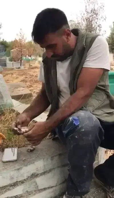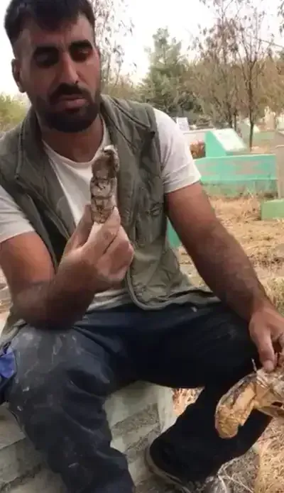 Diyarbakır merkez Bağlar ilçesinde bulunan Yeniköy mezarlığında mezar kazan Barış Karabulut, gördüğü manzara karşısında şaşırdı. Daha önce kazdığı mezarlarda büyü olduğunu düşündüğü kadın figürleri, kaşıklar, kuzu kafaları, kutulara yerleştirilen büyülerle karşılaştığını anlatan Karabulut, bu sefer kefenle sarılmış bir oyuncak bebek buldu. Bebeği eline alıp dikkatlice inceleyen Karabulut, ipleri kesip, üzerindeki bez parçalarını sökerek yaktı. Karabulut, bunun büyü olduğunu düşündüğünü söyledi.