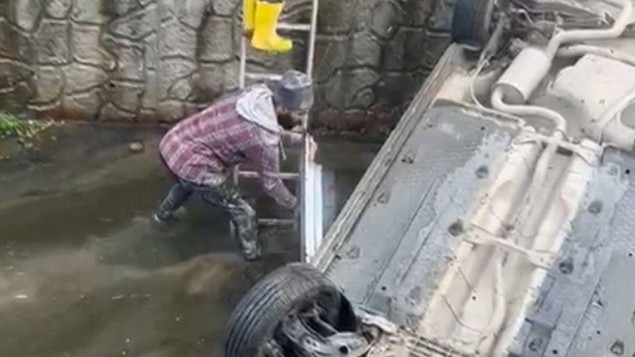 Kaza, Sakarya’nın Akyazı ilçesi Yahyalı Bağlantı Yolu üzerinde meydana geldi. Plakası 34 JK 1052 olan otomobil, yağmurun etkisiyle kayganlaşan yolda kontrolden çıkarak yol kenarındaki su kanalına uçtu. Araç, kanalda ters dönerek durabildi.