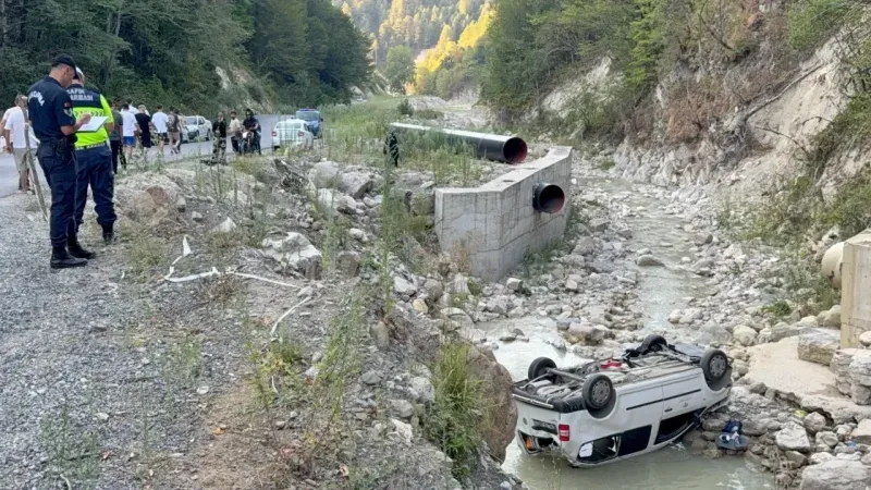 Düzce’de Samandere Şelalesi'ne pikniğe giden ailenin içinde bulunduğu hafif ticari araç, dönüş yolunda dereye uçtu. Kazada 6 kişi yaralandı.