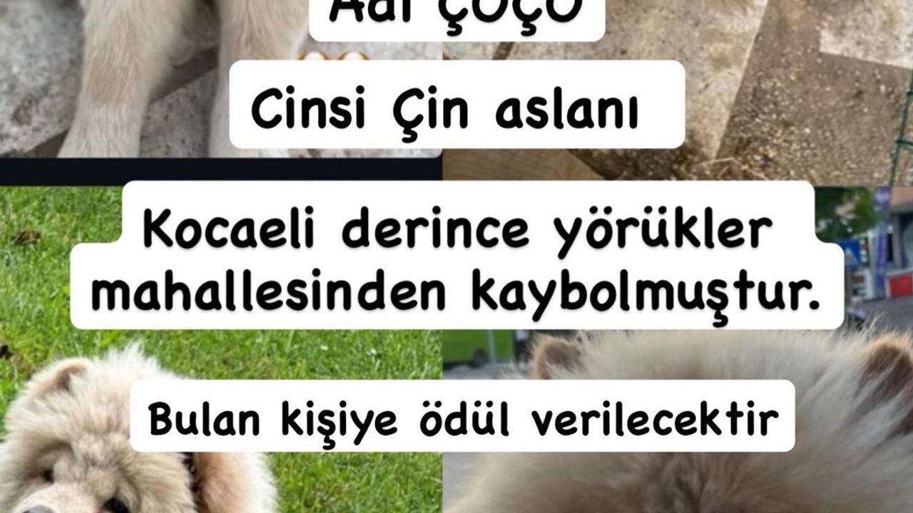 Kocaeli’nin Derince ilçesine bağlı Yörükler Mahallesi’nde, “Çoço” ismini verdikleri Çin Aslanı (Chow Chow) cinsi evcil köpek kayboldu.