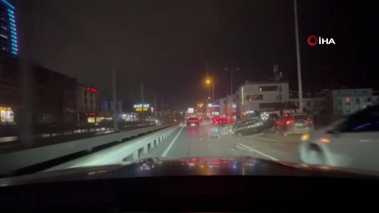 Kazada, takla atan otomobilin sürücüsü hafif yaralanırken, üç araçta maddi hasar meydana geldi. Olay anı çevredeki bir araç kamerası tarafından saniye saniye kaydedildi. Görüntülerde otomobilin savrularak E-5’e girdiği ve çarpışma anı net şekilde görülüyor.