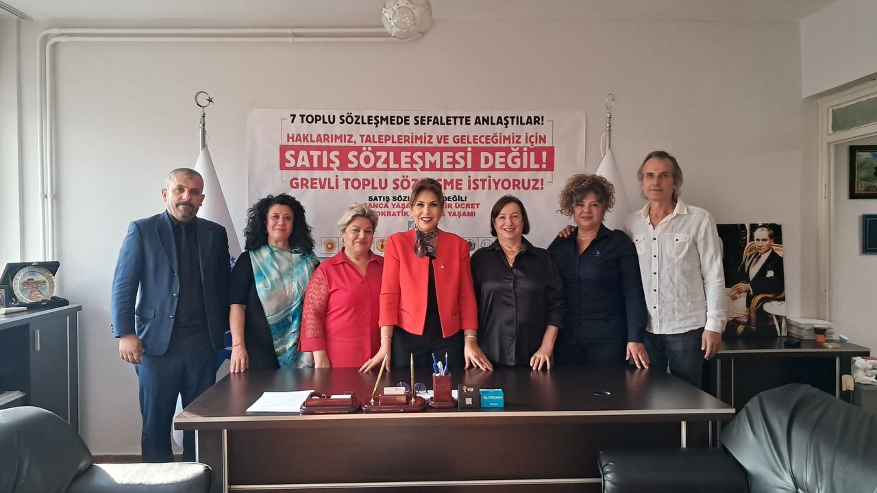 “Geriye dönüp baktığımızda; binlerce arkadaşımız baskı ve engellemelerle karşılaştı. Birçoğumuza Adli ve İdari Cezalar veridi. Kimi zaman sürgünlerle, kimi zaman gözaltı ve tutuklamalarla, kimi zaman da coplarla, sindirilmeye, susturulmaya zorlandık. Ancak bunların hiçbirine teslim olmadık. Kimi zaman Devletin baskıları ile kimi zaman Yol arkadaşlarımızın ihanetine uğradık. Ancak 35 yıl öncesinde olduğu gibi umut ve azimle kuşandık. Sendikamızın bugüne gelişinde emeği geçen Emek, Demokrasi, Barış ve Özgürlükler mücadelesinde yitirdiğimiz Şemsettin KAYMAK, İkram MİHYAZ, Cemal ÇAM, Elmas YALÇIN ve Efset DURAN gibi yiğit mücadele arkadaşlarımızı minnetle ve Saygıyla anıyor; anılarını kavgamızda yaşatacağımıza söz veriyoruz.”