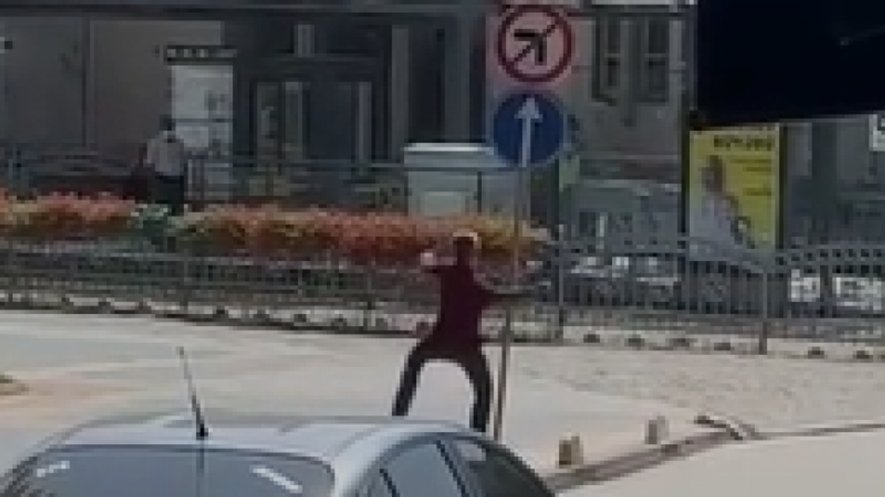 İzmit Halkevi mevkiinde vatandaşın biri tramvay durağının karşısındaki trafik levhasını yumrukladı. Levha ile kendi kendine kavga eden vatandaş etraftaki insanlar tarafından dikkat çekti. Vatandaş önce levhaya önce yumruk attı...