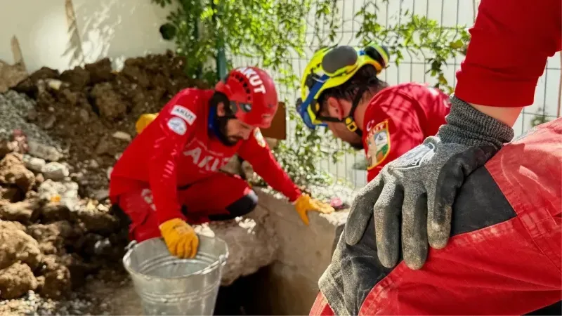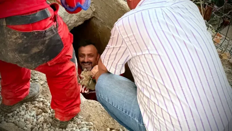 AKUT ekibi 2,5 metre derinlikte kediye ulaştı