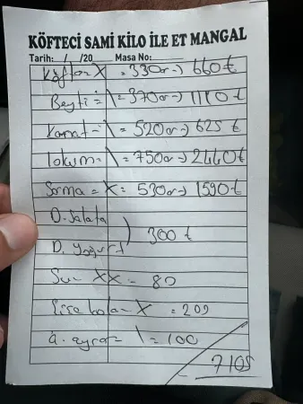 ''İzmir’den Eskişehir’e giderken yol üstünde sayısız reklam tabelası olan Köfteci Sami adlı işletmeye uğradık. Kasap bölümünden sipariş verdik. Yemek 3 yetişkin bir çocuğun asla bitiremeyeceği miktarda abartılarak getirilmişti. Bizim iki parça dediğimiz eti 6 parça bir şiş dediğimiz kanadı dipdibe sıkıştırarak dizip iki şiş getirdiler. Kısaca parça parça et deneyelim dedik ama onlar abarta abarta hesabı kabartmışlar. Adisyonu paylaşacağım şimdi. Hesabı da kabarık bekliyorduk ama beklediğimizin çok çok fazlası geldi. Tabi biz ucuz yırtmışız millete ne eziyetler etmişler. 14 Bin küsür lira hesap ödeyenler de var, çokça şikayet konusu olan bu durumu sizlere aktarıyorum'' dedi.
