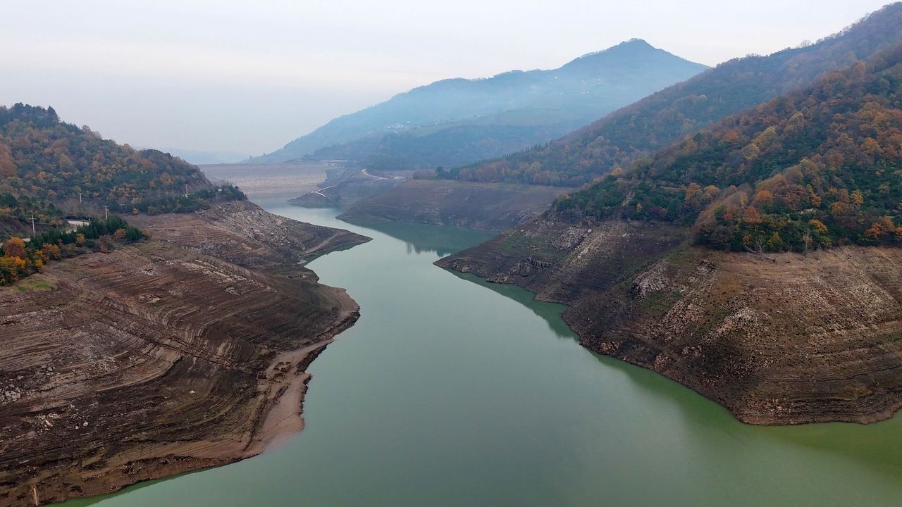 Kuraklık tehlikesiyle karşı karşıya kalan barajı besleyen dereler, kar suları ve sağanak yağışın etkisiyle yeniden hareketlendi. O anlar dron ile havadan da görüntülendi.